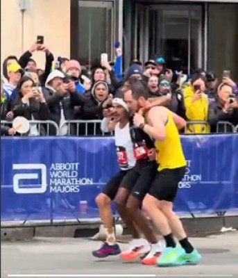 அமெரிக்கா – பாஸ்டன் மாரத்தானில் மயங்கிய விழுந்த வீரரை, சக வீரர்கள் இணைந்து தூக்கிக் கொண்டு இலக்கைக் கடந்த நெகிழ்ச்சிச் சம்பவம் தற்போது வைரலாகி வருகின்றது.