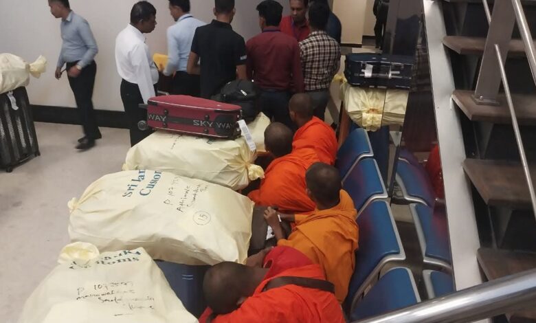 கட்டுநாயக்க விமான நிலையத்தில் 110 கோடி ரூபாவிற்கும் அதிக பெறுமதியான போதைப்பொருட்களுடன் 22 தேரர்கள் கைது செய்யப்பட்டுள்ளனர்.