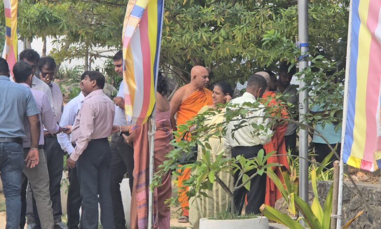 அதனை அடுத்து அவ்விடத்திற்கு வருகை தந்த கிராம சேவையாளர் காணி உரிமையாளர்களை அங்கிருந்து விகாரை பகுதிக்கு அழைத்து சென்றார்.