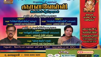 அவுஸ்திரேலியக் கம்பன் கழக மெல்பேர்ண் வளாகத்தினர் பெருமையுடன் வழங்கும் ஞானவேள்வி இலக்கியச் சிறப்புரைகள்