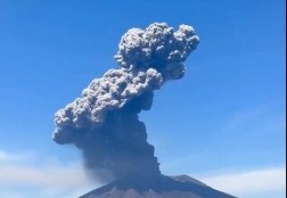 வெடித்துச் சிதறிய எரிமலை வானில் சூழ்ந்த புகைமண்டலம்!