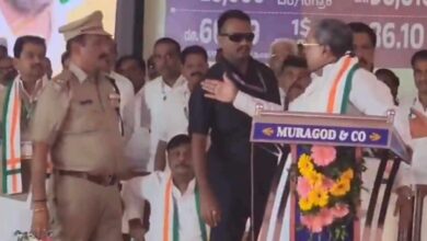 பொலிஸ் அதிகாரியை அடிக்க கை ஓங்கிய கர்நாடக முதலமைச்சர்!