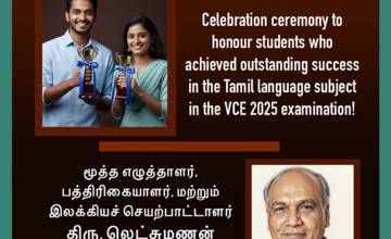 மெல்பேர்ணில் தமிழ் மொழி சாதனை விழாவுடன், சாதனை படைத்த மாணவர்களைப் பாராட்டும் விழா எதிர்வரும் திங்கள்கிழமை நடைபெற உள்ளது. அவுஸ்திரேலிய,…
